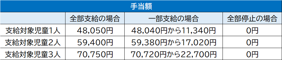 請求者、生計を共にする扶養義務者及び配偶者の前年の所得(給与所得者の場合は、給与所得控除後の所得)により支給額が決まります。